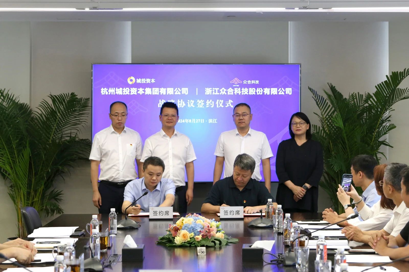 8月27日下午,眾合科技與杭州城投資本集團(tuán)有限公司(以下簡稱“城投資本集團(tuán)”)黨建共建協(xié)議與戰(zhàn)略合作簽約儀式在雙城國際總部順利舉行。
